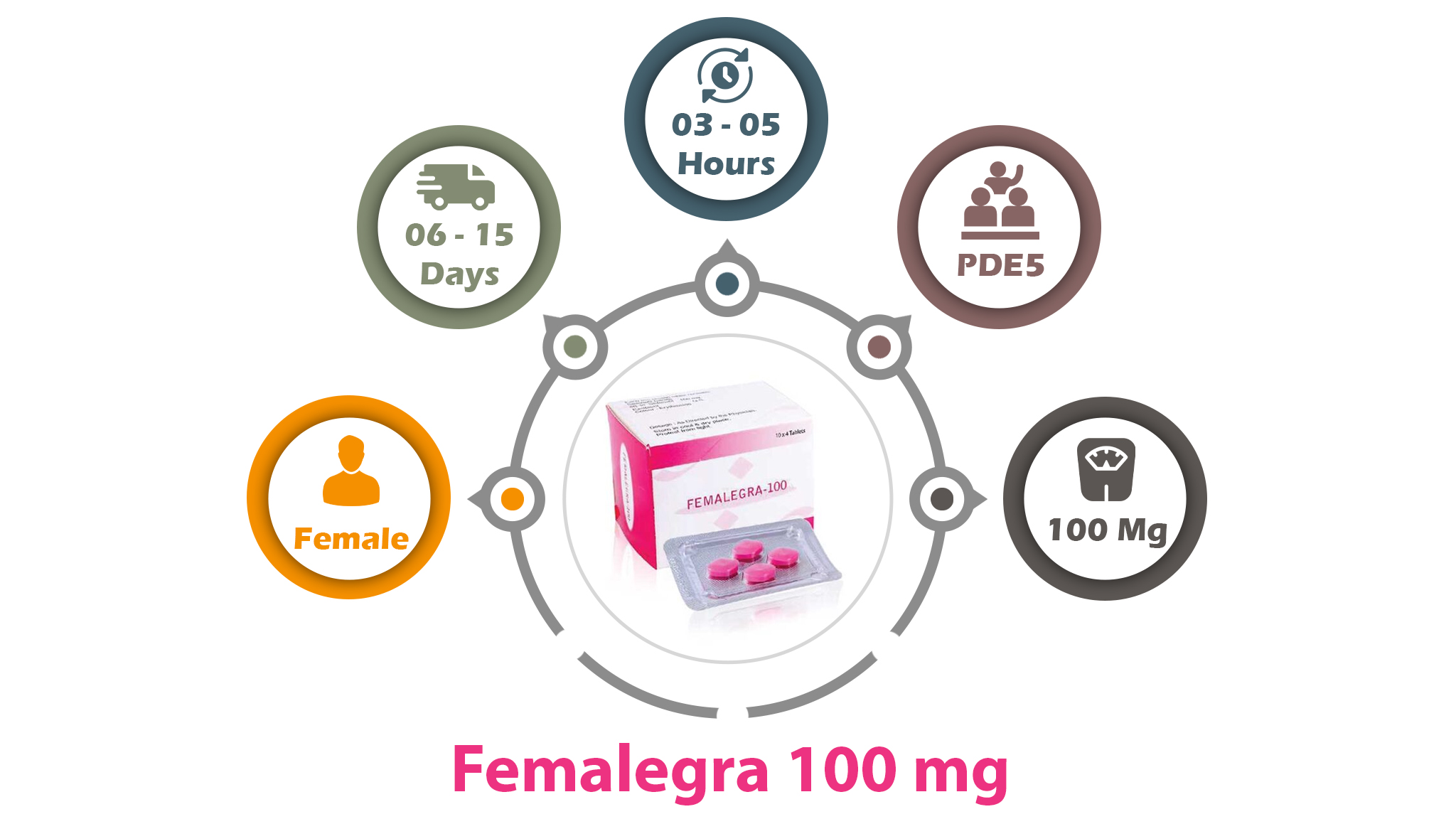 Femalegra 100 mg comes under the class of PDE5 inhibitors. This pill helps in stimulating blood flow in the male sex organ. This medicine functions in a similar way in a woman's body. It enhances the blood flow that goes to the genitals area of humans and ensures about becoming hypersensitive during lovemaking. This is one of the best medicines which can enhance the lubrication level in female sex organs. Femalegra is a completely different medicine than other sildenafil-based drugs.